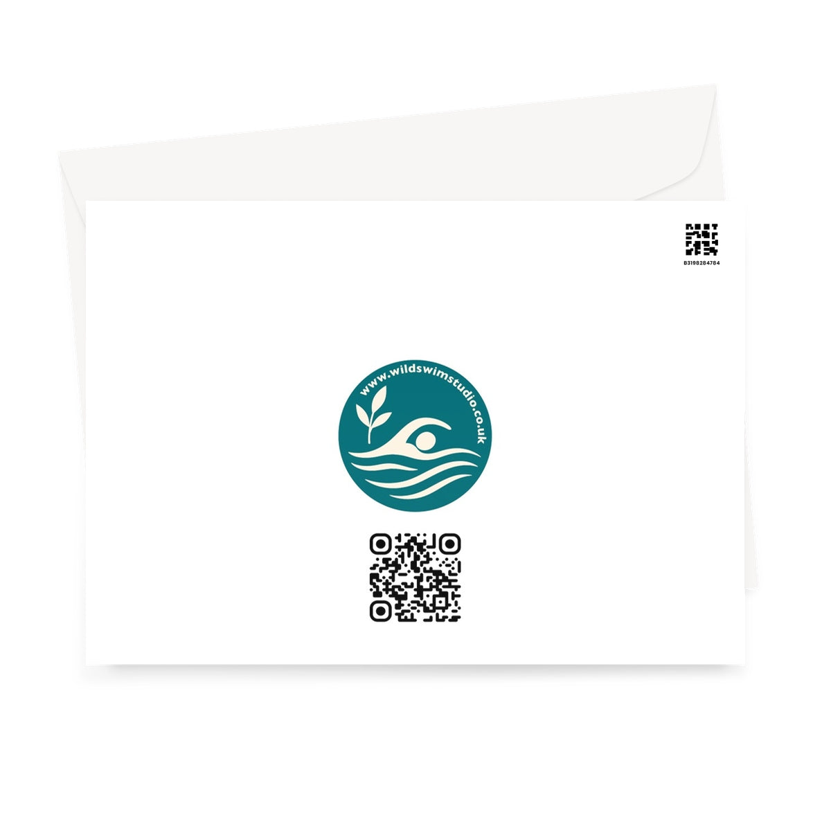 Back of Ho Ho Hypothermia wild swimming Christmas card with envelope, printed on premium 330 gsm card, blank inside.
