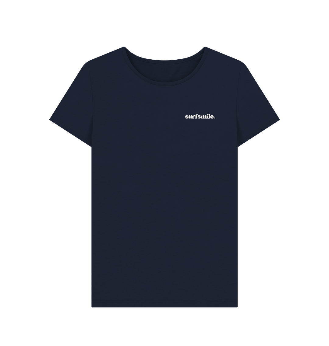 The Classic Logo Women’s Organic Crew Neck T-Shirt in Navy blends effortless style with a meaningful purpose. Made from soft, high-quality organic cotton, this T-shirt offers a comfortable, relaxed fit perfect for everyday wear. Featuring the signature SurfSmile logo, it’s more than just a stylish piece – every purchase supports SurfSmile's impactful programs. Your support directly helps fund their Adult Surf Therapy, Carers Surf Club, and the innovative Hang10 Surf to Work initiative, all aimed at promoting wellness and healing through surfing. Wear it with pride, knowing your choice is making a real difference.