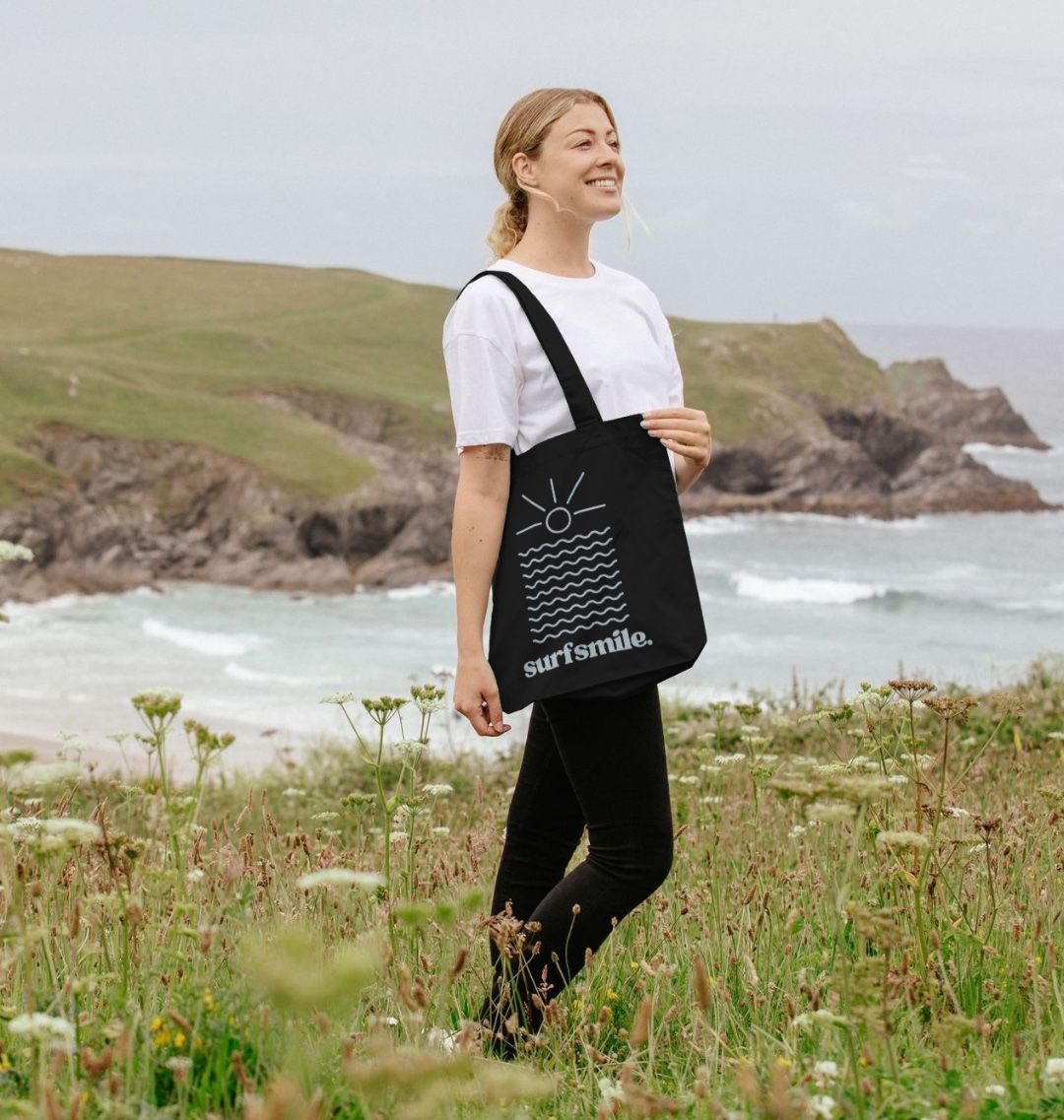 Choose the Surfsmile Tote Beach Bag in Black and embrace an eco-conscious lifestyle while making a positive impact on others.
