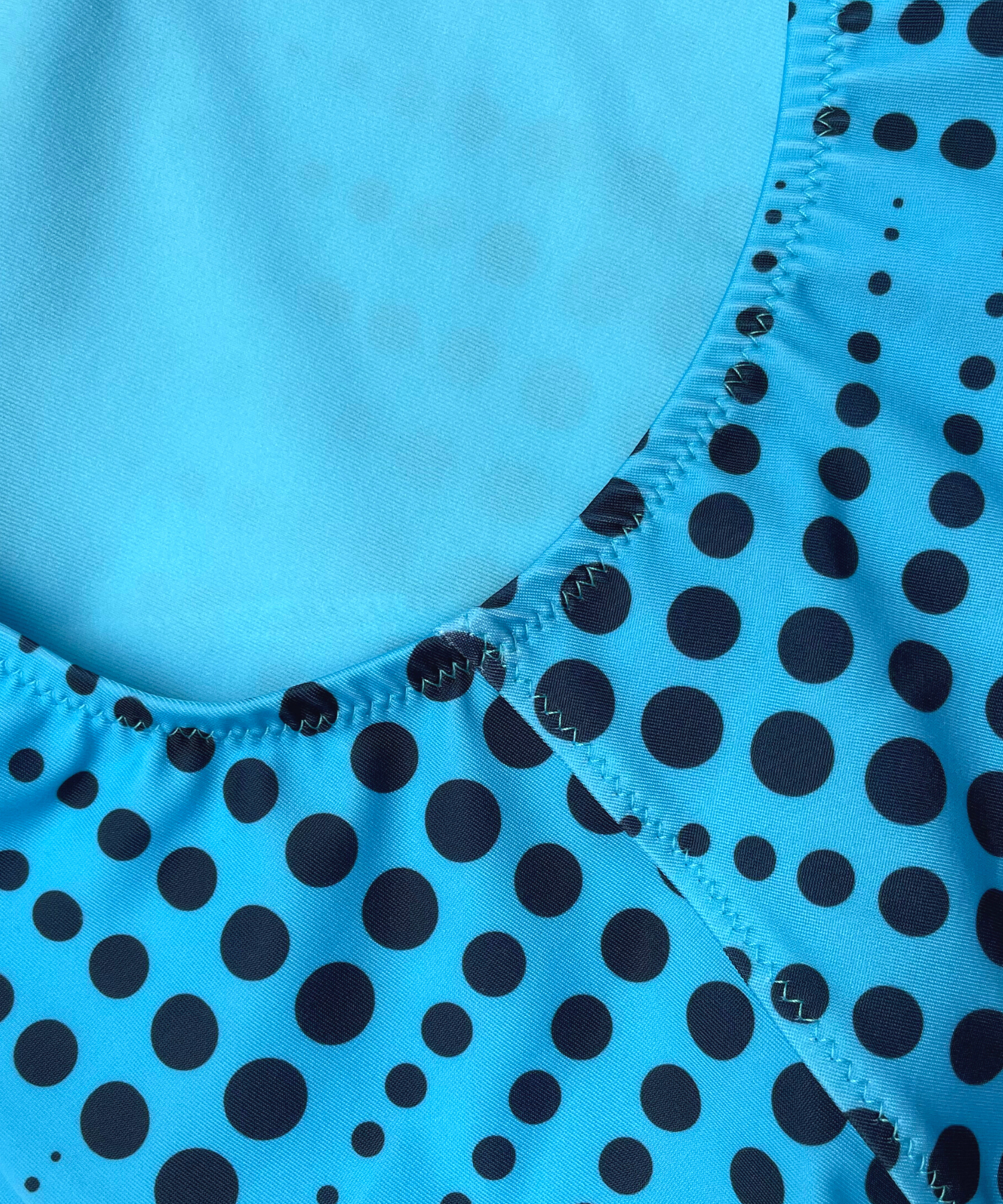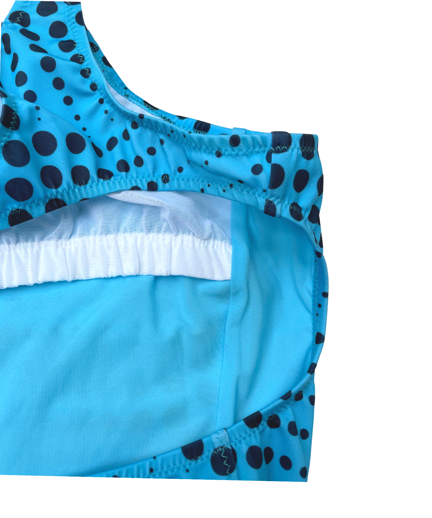 The Marilla, ‘shining sea’, is one of our new Bladeback Costume, it comes in a vibrant Aqua with our new bubbles graphic in Navy. A stunning stand-out suit for the summer.