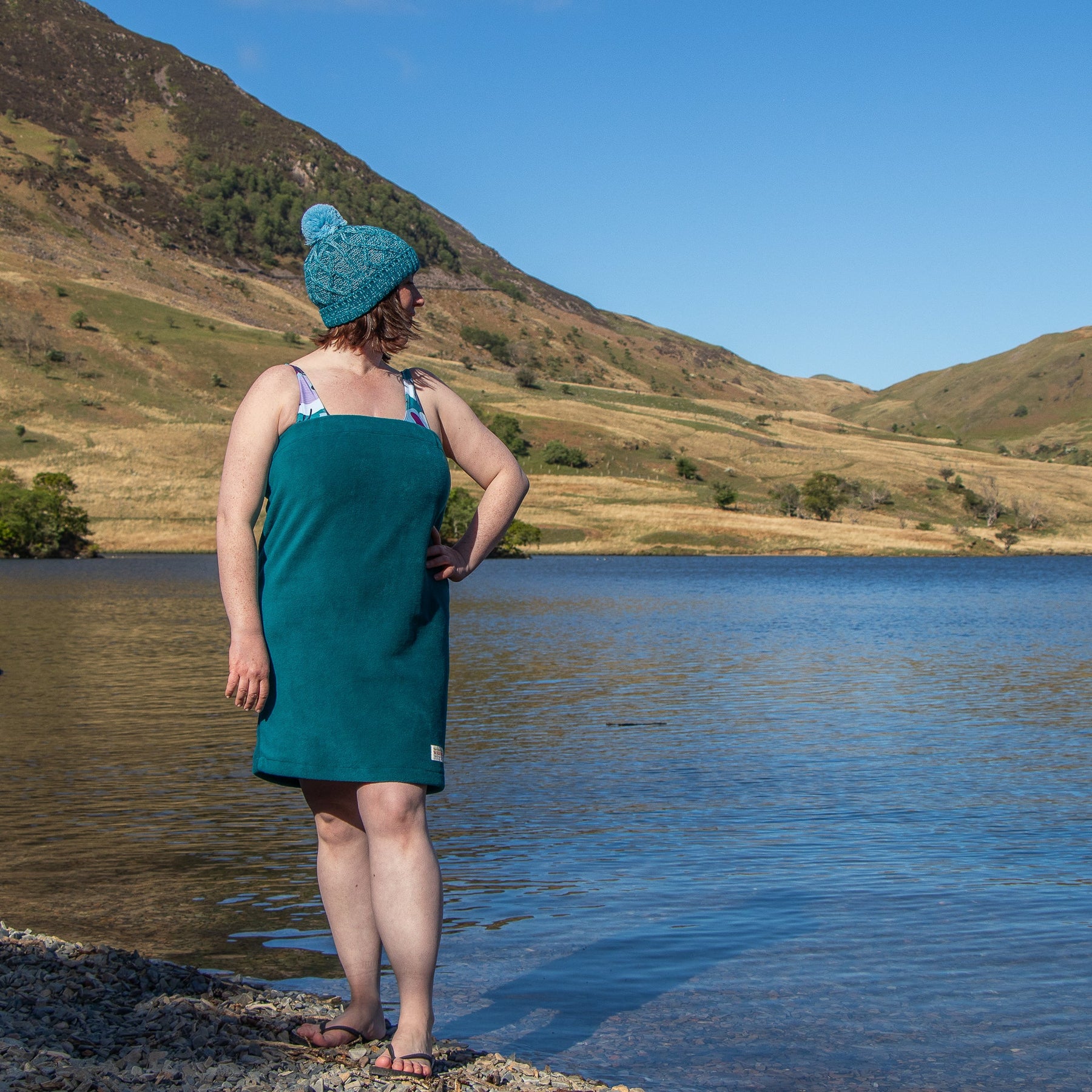 After your swim, simply slip the Changing Tube® over your head and down to cover your torso. Remove your swimsuit underneath while staying covered, then dress your top half. Pull the Changing Tube® lower to change your bottom half in privacy. It’s not a replacement for a towel — we recommend using a small one for a quick dab dry first — but it will help retain warmth, protect your modesty, and let you layer up quickly without any faff.